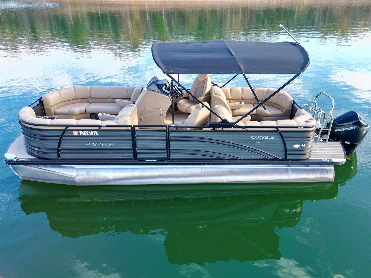 This stunning 2019 Harris Soltice 220 CWDH Tritoon, currently available for sale on Norris Lake, Tennessee, is a remarkable vessel for those looking to buy a yacht. Powered by a robust 200HP Mercury 4-Stroke Outboard Motor, this yacht features a spacious center walk-through layout with dual helm seating, perfect for navigating the waters in style. The electric bimini top, enhanced with LED lighting, adds a touch of elegance, while the mooring cover with EZ-clips ensures effortless handling. Inside, you'll find luxurious pillow-top upholstery, along with a performance package level 2 that includes a ski tow bar and an aluminum underside skin/splash guard for added durability. With 25'' diameter pontoons and 6'' lifting strakes, this Tritoon offers exceptional stability and performance. Enjoy the convenience of Mercury's digital throttle and shift controller, along with xtreme hydraulic power-assisted steering for a smooth ride. The engine data display provides real-time fuel economy information, making your outings even more enjoyable. For entertainment, the upgraded JL Audio Diamond stereo system, complete with subwoofer, will enhance your on-water experience. The comprehensive lighting package features customizable RGB colors for interior lights, cupholder illumination, exterior under-deck lights, and underwater lights, creating a captivating ambiance. Additional features include a center pontoon in-floor storage compartment, a total torsion reduction system for a quiet ride, and an upgraded removable black acrylic lounge table with cupholders and wine glass holders. Explore the luxury of yacht sales in the current boat location and seize the opportunity to own this exceptional vessel!