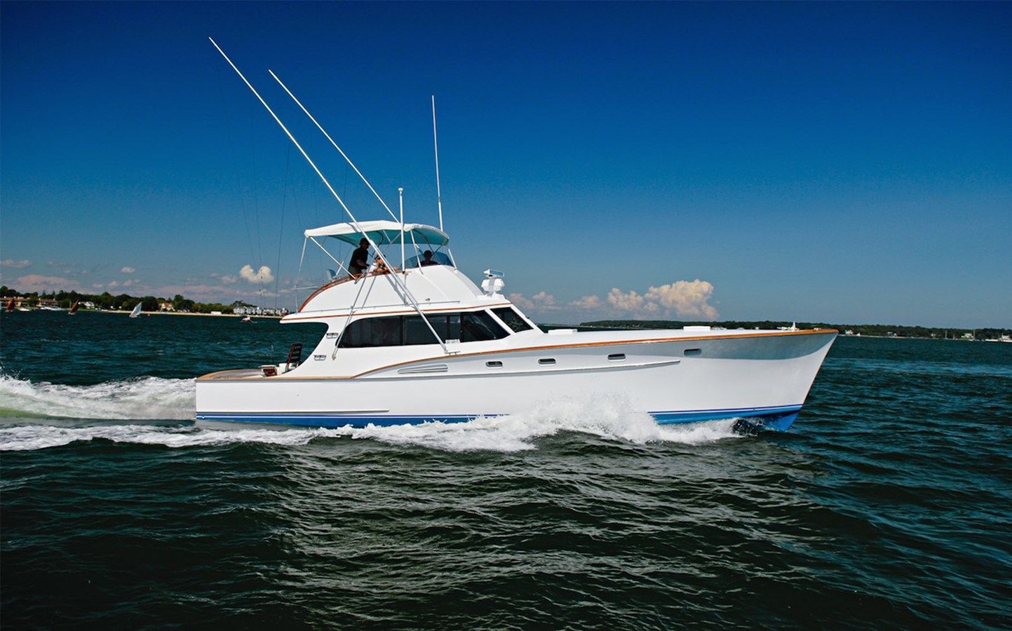 The V-shaped hull is a popular choice for wooden yachts, particularly those designed for speed and performance. This design features a sharp, angled bottom that cuts through the water, providing excellent handling and stability in rough seas. The V-shaped hull is ideal for yachts intended for open water cruising and racing, as it offers a smooth ride and reduces the impact of waves.
